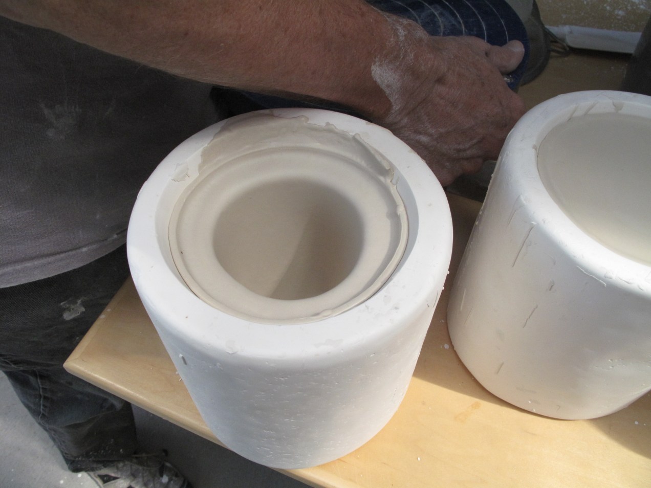 Post a comment or leave a trackback: Trackback URL. IMG_1066 2 cup molds, 1 has been filled with slip, left to sit, then poured out, leaving the clay shell vessel. The other mold still este filled with slip.